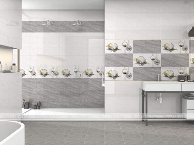 Gạch màu trắng hoặc trắng vân nhẹ là lựa chọn lý tưởng để kết hợp với gạch ốp tường màu ghi xám. Sự tương phản nhẹ giữa trắng và ghi giúp không gian trở nên thoáng đãng, tinh tế và sáng sủa hơn. Cách phối này đặc biệt phù hợp với phòng khách, phòng tắm hoặc không gian có diện tích nhỏ.