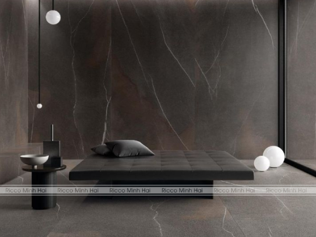 Mẫu gạch ốp tường khổ lớn tone đen quyền lực
