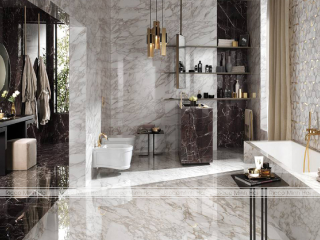 Cùng chiêm ngưỡng vẻ đẹp của các mẫu gạch ốp lát khổ lớn tại không gian phòng tắm sang trọng