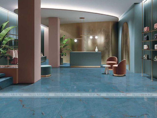 Cùng chiêm ngưỡng vẻ đẹp độc đáo của mẫu gạch lát sàn xanh nước biển đậm