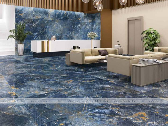Mẫu gạch lát sàn màu xanh biển họa tiết vân đá marble