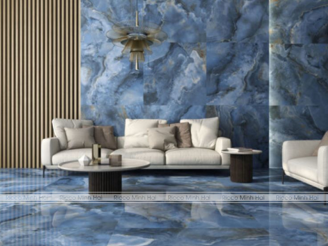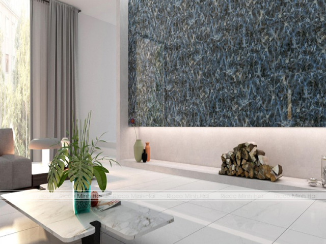 Gạch vân đá ốp lát phòng khách màu xanh biển