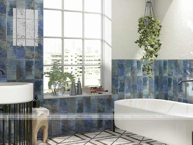 Mẫu gạch ốp tường phòng tắm tone xanh biển họa tiết ấn tượng