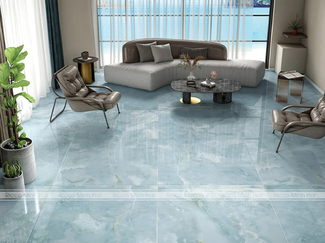 Mẫu gạch lát sàn phòng khách xanh biển đẹp miễn chê