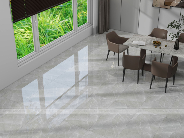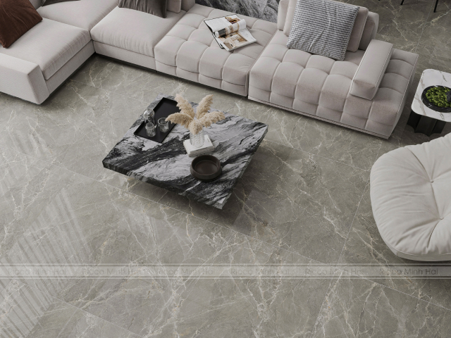 Gạch lát nền màu xám ghi là lựa chọn phổ biến trong các thiết kế nội thất hiện đại. Gam màu này mang lại cảm giác sạch sẽ, tinh tế và dễ dàng kết hợp với nhiều phong cách khác nhau. Ngoài ra, màu xám ghi còn giúp hạn chế lộ vết bẩn nhẹ, giữ cho không gian luôn gọn gàng và cân đối. Đây là tông màu phù hợp cho phòng khách, phòng ngủ và cả không gian thương mại. Nhờ tính ứng dụng cao, màu xám ghi ngày càng được nhiều gia đình lựa chọn.