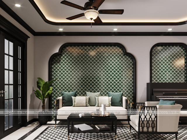 3. Gạch ốp tường phòng khách phong cách Indochine