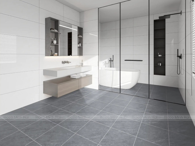 Kích thước gạch và khoảng cách mạch gạch cũng ảnh hưởng đáng kể đến việc vệ sinh tổng thể. Gạch có kích thước lớn sẽ giảm số lượng đường ron, từ đó hạn chế nơi tích tụ bụi bẩn và vi khuẩn. Ngược lại, gạch kích thước nhỏ hoặc thi công với nhiều đường ron sẽ khiến việc vệ sinh trở nên phức tạp hơn do các khe ron dễ bám bẩn và khó làm sạch. Bên cạnh đó, chất lượng keo chà ron cũng đóng vai trò quan trọng, nếu sử dụng vật liệu chống thấm, chống nấm mốc tốt sẽ giúp duy trì độ sạch lâu dài. Vì vậy, lựa chọn kích thước gạch phù hợp kết hợp thi công đúng kỹ thuật sẽ nâng cao đáng kể khả năng vệ sinh.