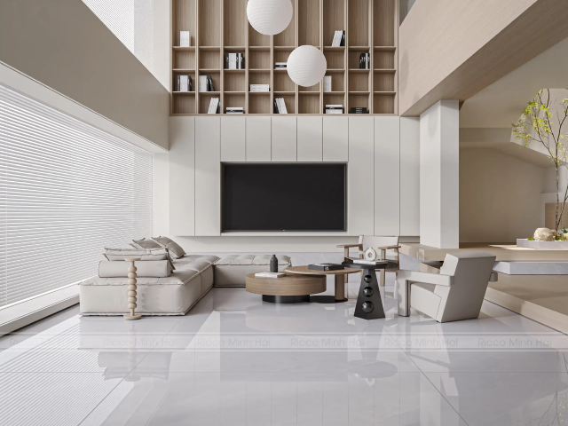 Gạch Tasa men bóng lát sàn phòng khách dễ vệ sinh
