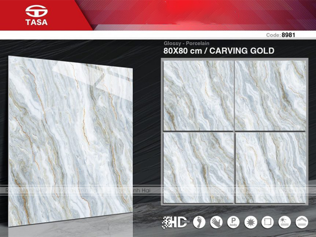 Mang vẻ đẹp sang trọng, hiện đại và dễ phối với các phong cách nội thất từ cổ điển đến đương đại. Các mẫu gạch vân đá Tasa thường có độ bóng cao, đường vân tự nhiên, thích hợp lát nền phòng khách, hành lang hoặc sảnh.
