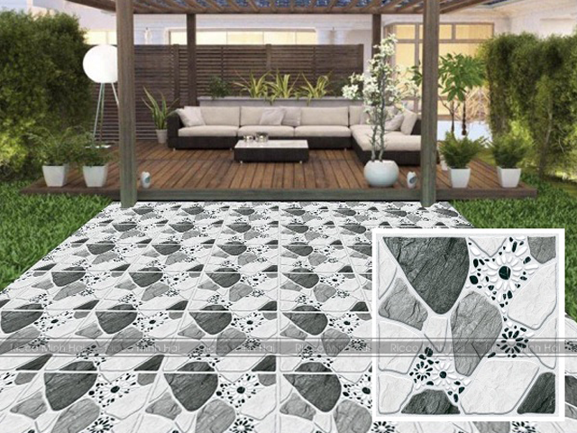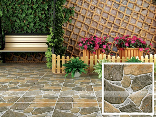 Đây là lựa chọn hoàn hảo để tạo nên không gian sân vườn xanh mát, gần gũi với thiên nhiên. Gạch giả cỏ Tasa mô phỏng sinh động bề mặt cỏ thật, vừa có tính thẩm mỹ cao, vừa đảm bảo độ bền, chống trơn trượt tốt, rất thích hợp lát lối đi, khu vực tiểu cảnh ngoài trời. Ngoài ra, các mẫu gạch trang trí với họa tiết tự nhiên như lá cây, hoa văn cách điệu cũng được sử dụng để điểm tô không gian sân vườn, tạo nên sự hài hòa và sống động.