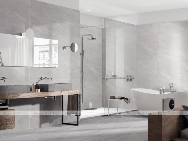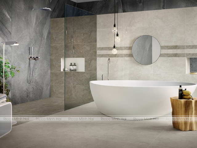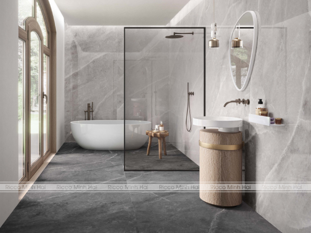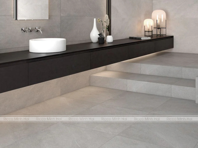 Mẫu gạch lát nền màu xám vân dá ấn tượng cho nhà tắm