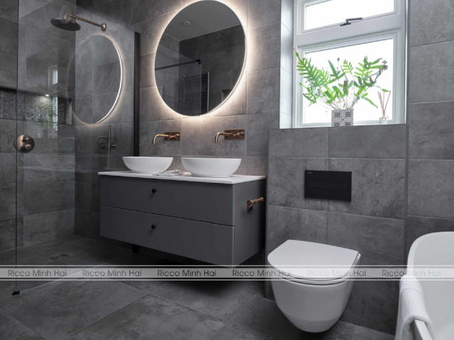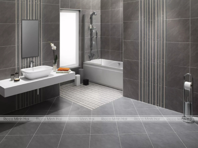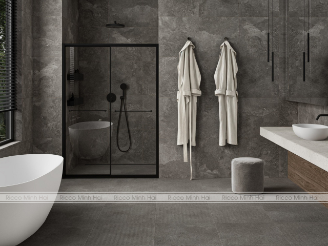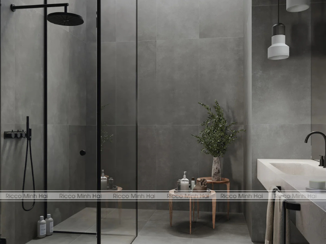 Gạch chống trơn nhà tắm tone màu xám cho nhà tắm hiện đại