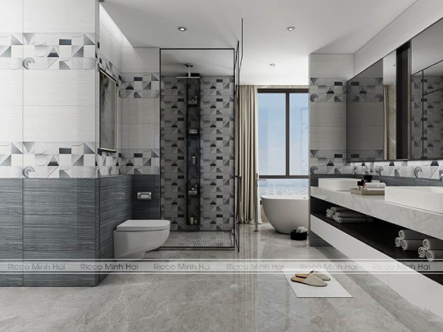 Một mẫu gạch ấn tượng lát sàn phòng tắm được nhiều chủ nhà yêu thích