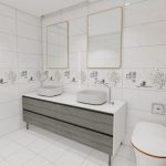 Gạch lát nền phòng bếp màu trắng vân đá ấn tượng