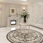 Mẫu gạch lát nền phòng bếp màu trắng vân đá