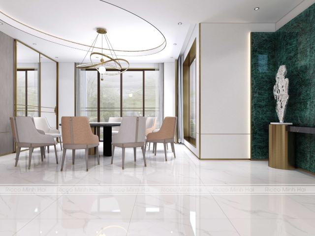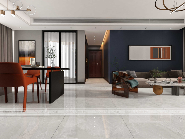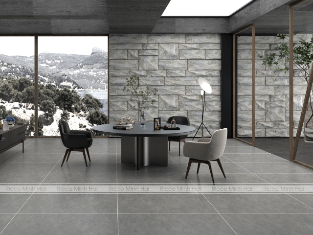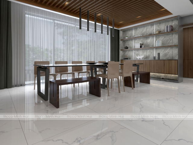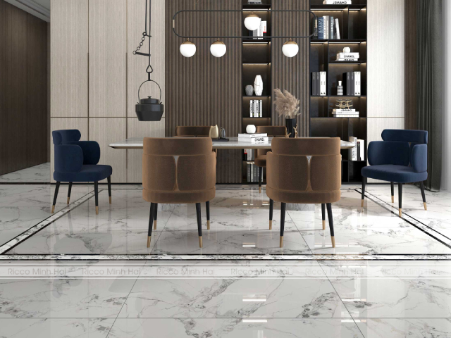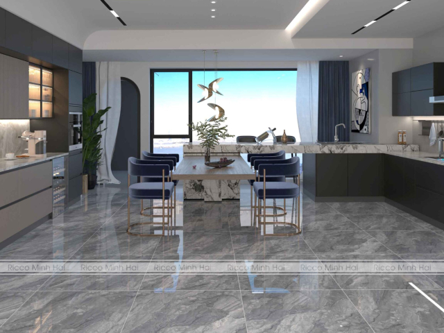 Gạch lát sàn phòng bếp vân đá hiện đại