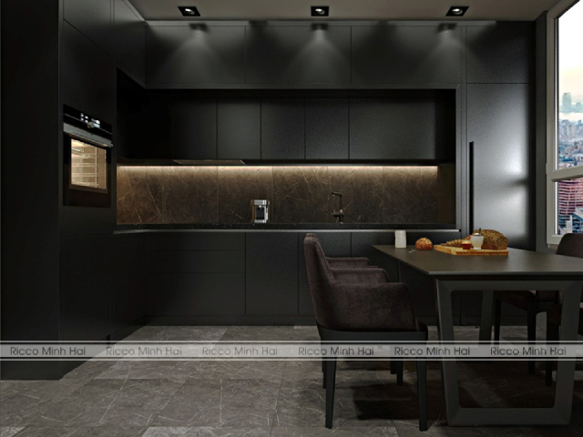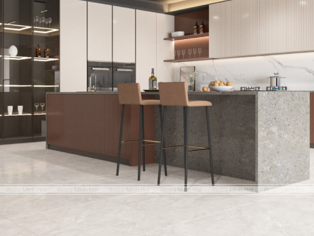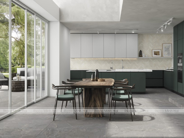 Mẫu gạch vân đá ấn tượng lát nền phòng bếp
