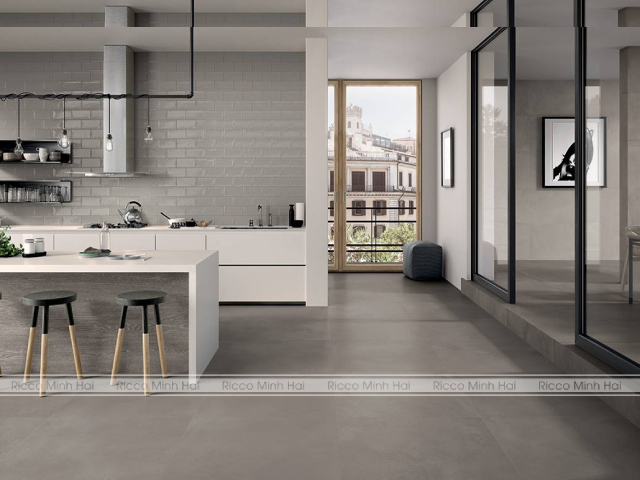 Mẫu gạch lát sàn phòng bếp vân xi măng