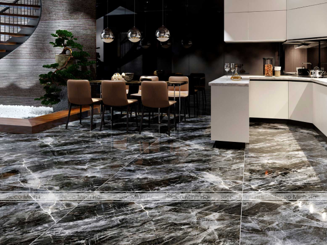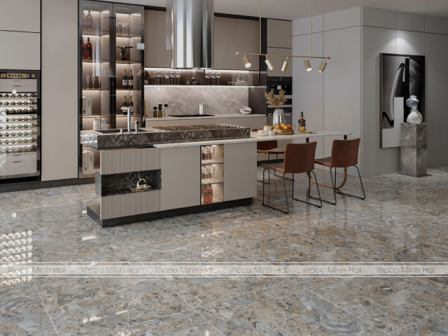 Mẫu gạch lát sàn phòng bếp vân đá men bóng
