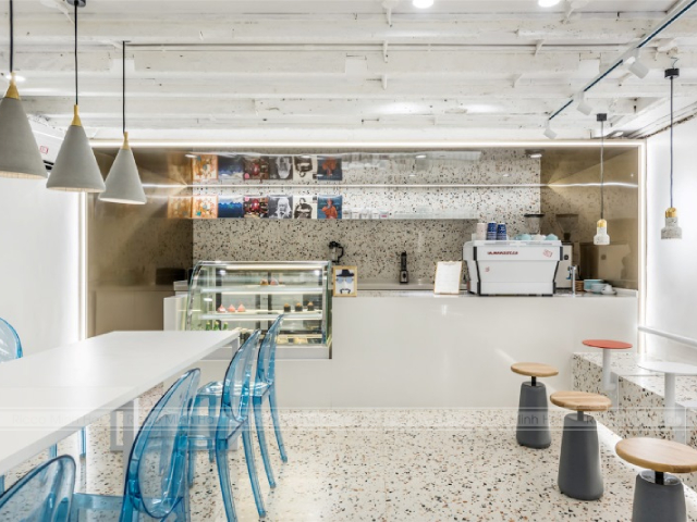 Gạch terrazzo được nhiều quán cafe ưa chuộng nhờ họa tiết độc đáo và mới lạ. Bề mặt gạch là sự kết hợp của nhiều hạt đá nhỏ với màu sắc khác nhau, tạo nên hiệu ứng sinh động và thu hút. Loại gạch này phù hợp với các quán cafe trẻ trung, sáng tạo hoặc phong cách retro. Ngoài tính thẩm mỹ, gạch terrazzo còn có độ bền cao và dễ vệ sinh. Khi sử dụng, không gian quán sẽ trở nên nổi bật hơn, giúp tạo ấn tượng mạnh với khách hàng ngay từ lần đầu ghé thăm.