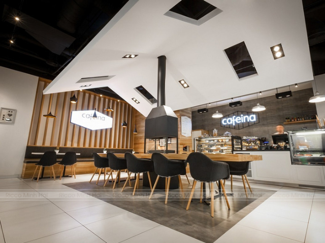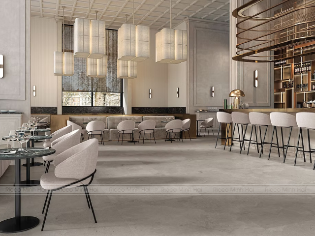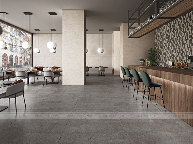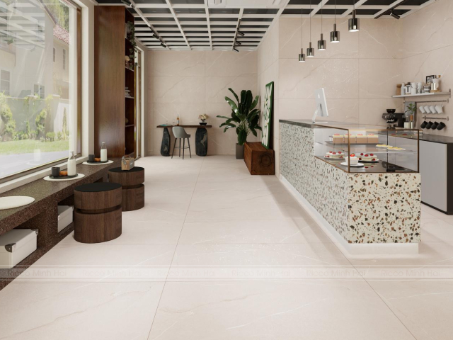 Gạch khổ lớn lát sàn quán cafe hiện đại