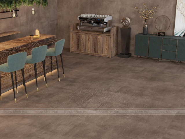 Mẫu gạch tone nâu trầm lát sàn quán cafe