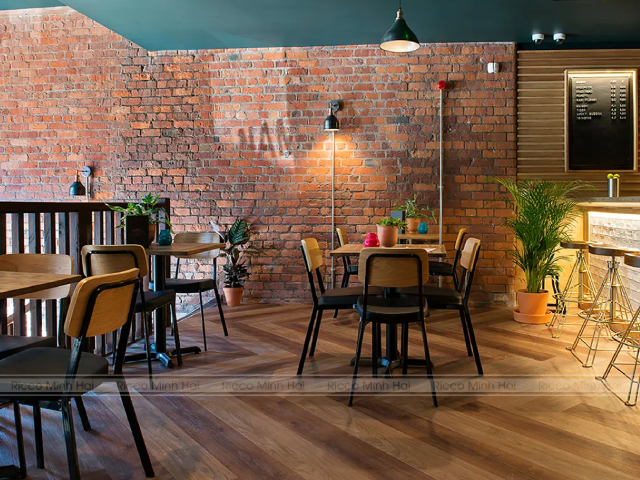 Gạch vân gỗ lát sàn tại quán cafe