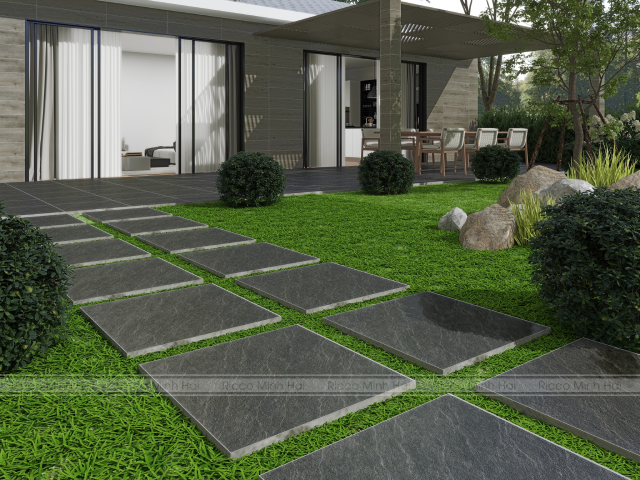 Gạch lát sân vườn bề mặt nhám là dòng gạch được thiết kế với lớp bề mặt sần nhẹ, không bóng, thường được sử dụng để lát nền cho các khu vực ngoài trời như sân vườn, lối đi hay sân thượng.