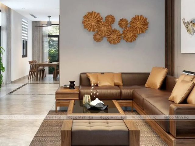 Gạch vân gỗ lát nền phòng khách hiện đại