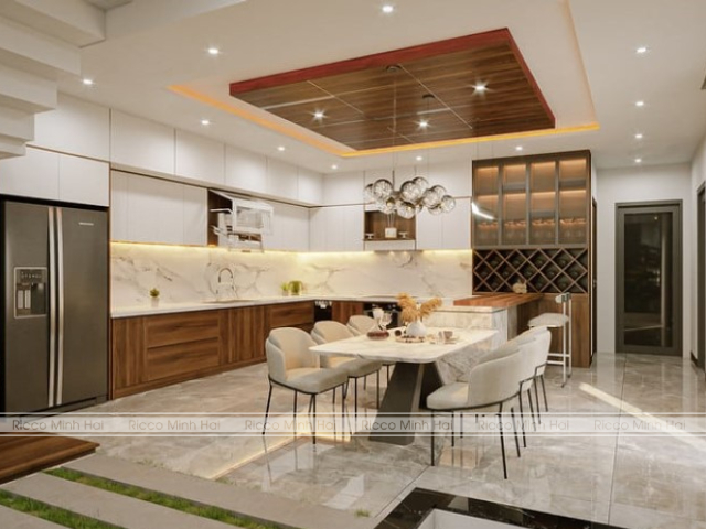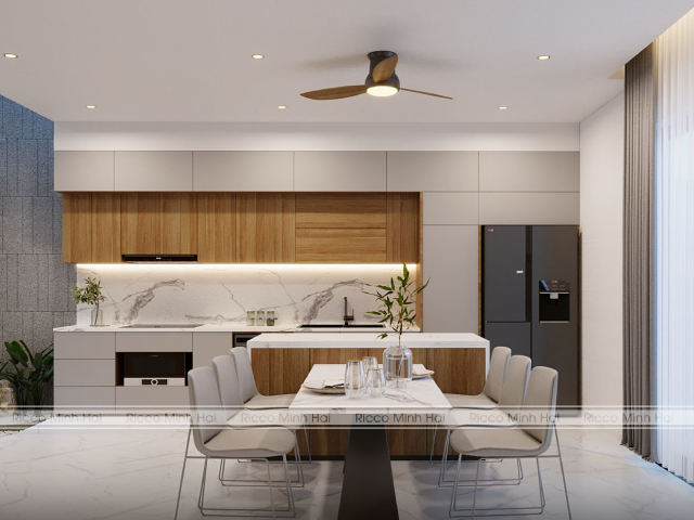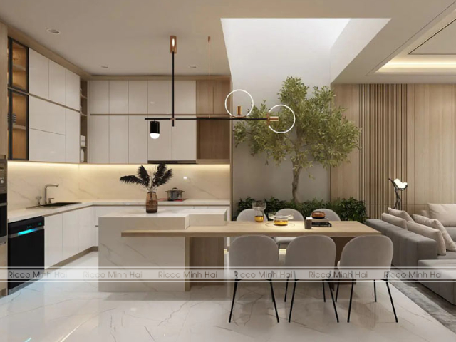 Mẫu gạch vân đá trắng lát nền bếp đẹp – ấn tượng