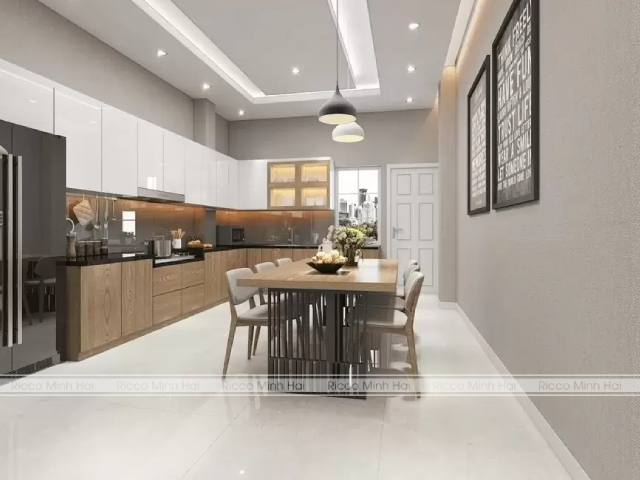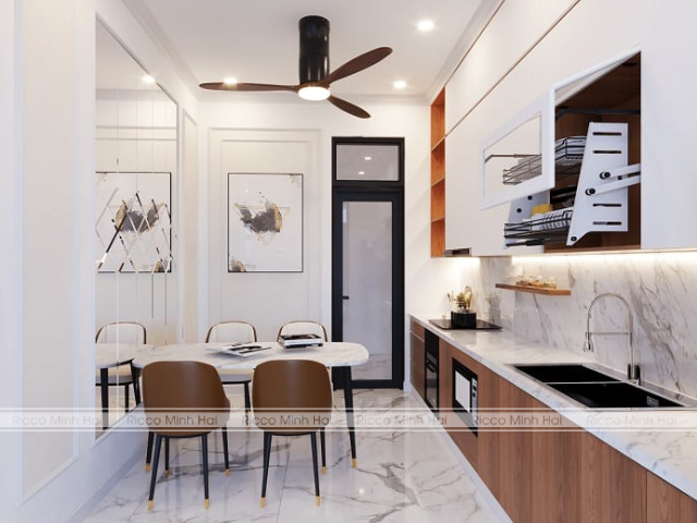 Mẫu gạch vân đá trắng cho phòng bếp nhà ống