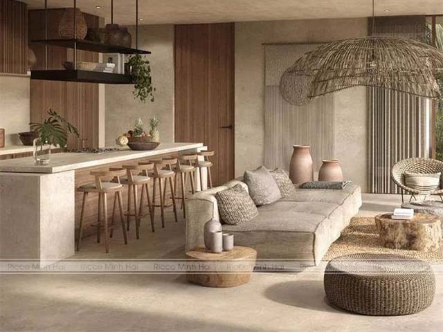 Gạch lát sàn giả bê tông với không gian mang phong cách thô sơ, mộc mạc nhưng vẫn hiện đại và thu hút