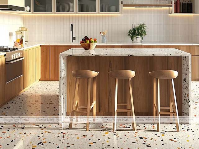 Gạch Terrazzo lát sàn làm tăng vẻ đẹp cho không gian bếp