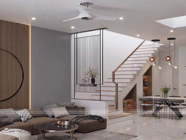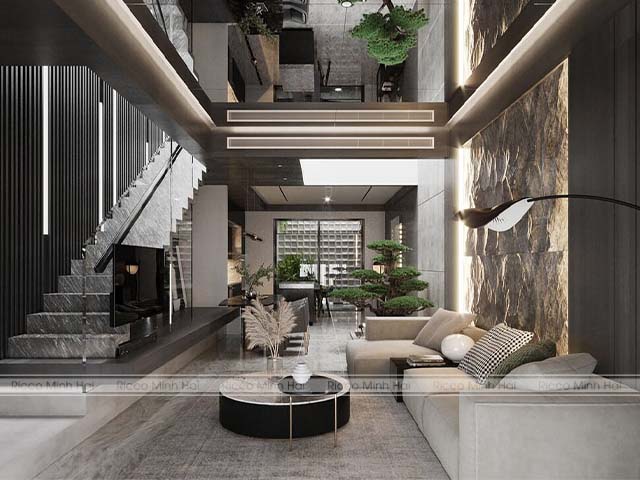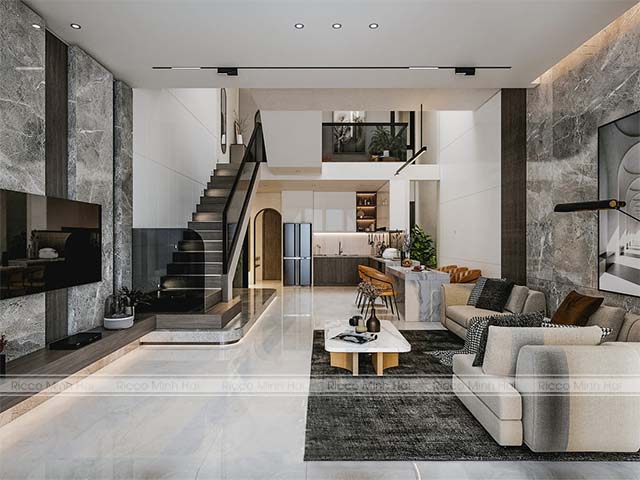 Gạch trắng vân đá kết hợp hoàn hảo với không gian hiện đại